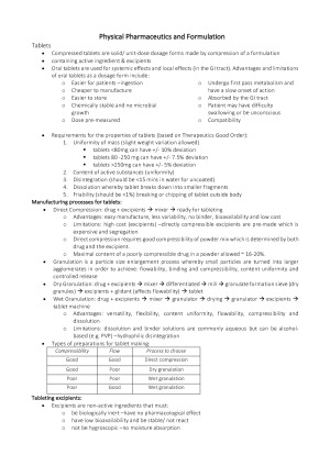 List of topics covered: -Tablets -Micromeritics -Solids -Aerosols -Capsule Technology -Solid Protein Formulation -Rectal delivery -Biomaterials and tissue engineering