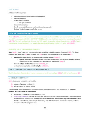 Comprehensive and detailed HD law notes. Includes case summaries and exam scripts with steps for how to cover each topic thoroughly. They are colour coded (green for scripts, purple for cases and pink for legislation). Topics covered: - Introduction to Consumer Law - Liability of Manufacturers of Goods with Safety Defects - Misleading and Deceptive Conduct - Unfair Terms and Unconscionable Conduct - Product Safety Standards and Statutory Remedies - Markets; Market Power; Competition - Mergers - Misuse of Market Power - Anti-Competitive Agreements - Cartel Conduct - Exclusive Dealing - Resale Price Maintenance