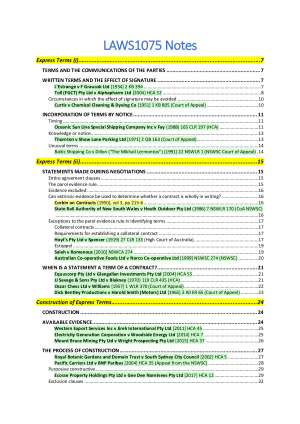 The notes consolidate all of the course's readings throughout Term 1 2023 except for modules. All cases and concepts of this course are summarised and readily accessible using the contents page. Important key parts of judgements are also highlighted.