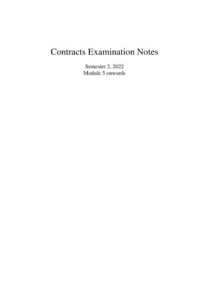 The most up-to-date, and efficiently set out examination notes you will find. There is nothing worse than buying notes for an exam that turn out to be outdated and too long to be of any use in a time pressured examination. These notes were prepared in Semester 2 2022, where they achieved a H1. They are completely up to date with the course as taught in its most recent form, and contain efficient summaries of all cases and content taught in the unit - with an emphasis on guiding hypo responses. They contain a summary of all relevant cases to be applied in the examination, as well as notes explaining the process and order of application in some instances. Topics covered: 1. Unfair terms 2. Consumer guarantees 3. Frustration and contingent conditions 4. Termination by consent 5. Termination for frustration 6. Termination by breach 7. Essential terms 8. Intermediate terms 9. Repudiation 10. Termination for late performance 11. Mistake 12. Unilateral mistake (contracts rectified, contracts rendered void) 13. Duress 14. Unconscionable dealing 15. Undue influence 16. Statutory unconscionable conduct 17. Illegality