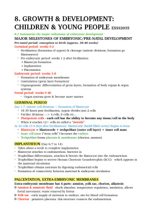Full Comprehensive notes for EXSS2035 - Physical Activity and Society, of which I received a High Distinction in All topics included: 1. Physical Activity 2. Exercise Professionals in Australia's Health System 3. Environmental and other Determinants of Physical Activity: The Built Environment 4. Political and other Determinants of Health: Exercise Adherence 5. Sedentary Behaviour and Physical Inactivity & Population Surveillance 6. Objective Measurement of Physical Activity & Energy Expenditure 7. Promotion of Physical Activity 8. Physical Inactivity & Sedentary Behaviour 2 9. Growth & Development: Children & Young People 10. Exercise Physiology in Growth & Development 2 11. Exercise During Growth & Development 3 12. Physical Activity & Pregnancy 13. PA/SB Guidelines for young people: Exploring the Evidence