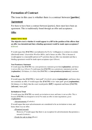 Spent lots of time reading cases and writing this exam script. Topics include: TOPIC 2 - OFFER TOPIC 3 – ACCEPTANCE TOPIC 5 - CONSIDERATION TOPIC 6 - INTENTION TOPIC 7 – CERTAINTY TOPIC 8 - CAPACITY TOPIC 9 - FORMALITIES TOPIC 10 - PRIVITY TOPIC 11 - ESTOPPEL TOPIC 12 – EXPRESS TERMS - INCORPORATION TOPIC 13 – EXPRESS TERMS - CONSTRUCTION TOPIC 14 – IMPLIED TERMS TOPIC 15 – GOOD FAITH TOPIC 16 – AUSTRALIAN CONSUMER LAW – CONSUMER GUARANTEES TOPIC 17 – AUSTRALIAN CONSUMER LAW – UNFAIR CONTRACT TERMS