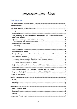 Highly Comprehensive Succession Law Exam Notes/Script with complete footnotes of authorities (HD 83)