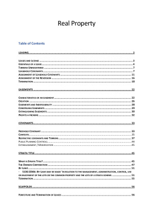 Topics included in extensive detail: - Leasing - Easements - Covenants - Strata Title + Detailed Exam Response Scaffolds on the Forfeiture and Termination of Leases, Co-Ownership and Mortgagee's Power of Sale.