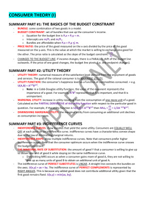 92HD ECC2000 (Intermediate Microeconomics) Summary Notes
