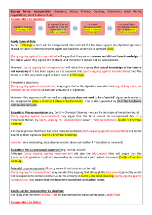 Topics Covered: - Offer - Acceptance - Consideration - Intention - Certainty - Capacity - Formalities - Privity - Estoppel - Express Terms (Incorporation & Construction) - Implied Terms - Good Faith - Consumer Guarantees - Unfair Contract Terms