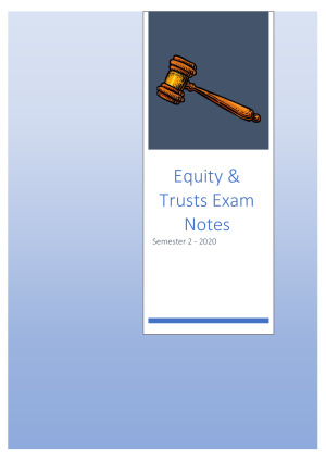 Thorough Equity and Trusts exam notes, covering the lecture and tutorial content and readings from all weeks. Easy to read format with contents page including breakdown of relevant content for each week. Ready to print.