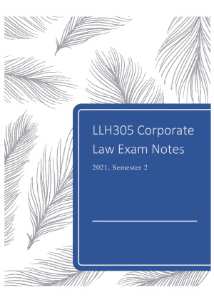 Thorough Corporate Law exam notes, covering the lecture and tutorial content and readings from all weeks. Easy to read format with contents page including breakdown of relevant content for each week. Ready to print.