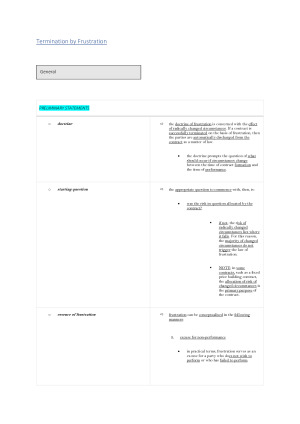 These H1 notes (+300 pages) are highly comprehensive contract notes, providing a detailed overview of each topic, including examples, case summaries, and a logical approach to working through each area. The topics covered include: Terms: -Incorporation of Terms -Interpretation of Terms -Implied Terms -Consumer Protection Termination: -Introduction to Termination -Termination by Consent -Termination by Frustration -Contingent Conditions -Termination for Breach Vitiating Factors: -Introduction to Vitiating Factors -Mistake -Duress -Undue Influence -Unconscionable Dealing -Statutory Unconscionability -Third Party Misconduct -Illegality