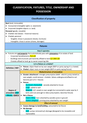 A comprehensive collection of case law and statutes relevant to the subject - in an aesthetically pleasing tabular format, color-coded and summarised. It covers all examinable topics, including: - Introduction to property - Title, ownership, possession, law of finding - Doctrine of tenure and estates and gifts of personal property - Adverse possession - Land transfer & formalities - Easements - Restrictive covenants - Leases and leaseold covenants