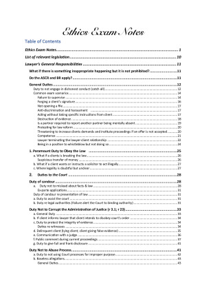 These complete scripted notes which contain all legislation and relevant cases were used in my exam and allowed me to score a HD (88) overall. I scored internally. Thus, I scored () on the exam. These scripted notes are formatted through headings and sub headings that make the notes very easy to utilise and copy out in an exam situation (see pages 10-20 of Sample Notes). These notes also include detailed policy discussion (see pages 21-28 of Sample Notes). I read all the additional readings and extracted ideas I thought would be useful for a policy question. Importantly, I have included AGLC4 compliant footnotes for all authorities ( cases, legislation, journal articles etc). I read the cases and legislation so exact pinpoints are used. Whilst this method of notes construction was incredibly arduous for myself, it provides for a clear understanding of how the legislation and case law applies to a problem question and ensures a complete and succinct answer is written. These complete methodically crafted scripted notes will serve as your Ethics bible as I have compartmentalised my deep understanding of Ethics Law’s content into exam-ready responses. With these notes you will be able to succeed in any Ethics Law exam as well as save countless hours trying to understand content and make notes for this exam.