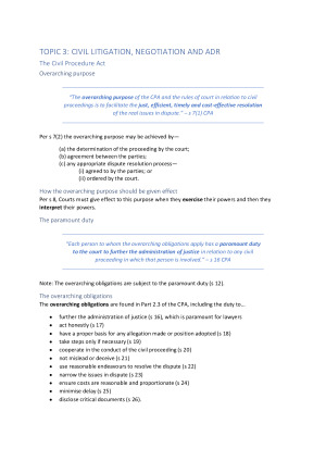 These HD notes cover all the topics found in LAW4309 Lawyers Ethics in Practice at Monash University and are up to date as of Semester 2, 2023. They cover all of the content of the unit, including background information, legal principles, and key cases. Every topic is organised under a clear and logical heading structure and will place you in a great position to participate in classes as well as prepare for assessments and the exam. Topics include: - Overview of lawyers’ responsibilities - Civil litigation, negotiation and ADR - Ethical responsibilities in criminal matters - Confidentiality and privilege - Conflicts of interest - Duty to account - Admission to practice - The legal profession, self-regulation, challenges and reform