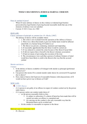 Week 1 - Introduction to Criminal Law Week 2 - Murder Week 3 - Manslaughter Week 4 - Assault Week 5 - Sexual Offences Week 6 - Property Offences - Part 1 Week 7 - Property Offences - Part 2 Week 8 - Complicity Week 9 - Duress, Necessity and Marital Coercion Week 10 - Mental Impairment and Infanticide Week 11 - Intoxication