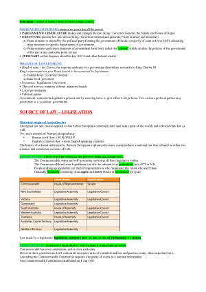 My notes include all the necessary information for the open-book tests and exam, with detailed explanations! bolded key terms, and important principles gathered from the compulsory case studies. It includes all you need to get a H1 like me. The topics included are: Source of Law (Legislation and Case Law), Contract Formation, Contract Terms, Performance and Breach, Remedies for Contractual Breach, Invalidating Contracts, Consumer Protection Law, Tort Law, Agency Law.