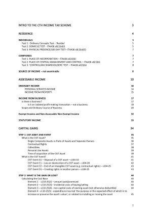 My professors were Miranda and Monica if that's useful info for you. These notes include everything from assessable income, CGT, residency and international taxation (which was examinable for us), income splitting rules, deductions, taxation of entities, capital expenditures and allowances, and tax planning information. There was no separate mid semester exam in my year like some prior ones so these notes include the entire course. I have the most relevant case law information and facts put in the section where it is directly applicable to what you're looking at on the exam, instead of having to flip back and forth all the time between cases and hypo notes info. I ended up having to take the supplementary exam and so I got extra time asking the professor questions and answering prior exams, which they extra bits of info and tips made their way into these notes Just to note, I recommend that if you use these notes without adjusting anything that you write the case names next to the section in which they fall under for the exam on the table of contents. I found that really helpful when I was in the exam for quick guidance and was something I did once I printed off my notes and was doing practice problems. Which I did have one friend use these notes without any adjustments who did the July intensive and the exam went well for her.