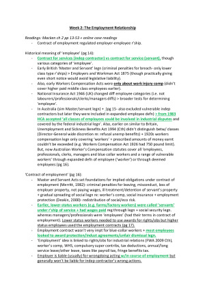 As a subject with a challenging take home exam, it is imperative for students to have a well-structured, clear and all-inclusive set of exam notes for the Employment Law exam. Also, Employment Law builds further on many principles of Contract Law, hence it is key to have a high-level understanding of both strands of law, which these notes also incorporate. I used these notes to achieve either High Distinctions or Distinctions in all Employment Law assessments. Topics included are: 1. The Employment Relationship 2. Employment vs other kinds of relationships 3. The Employment Contract (formation and terms) 4. Employee Duties 5. Employer Duties 6. Mutual Duties of Employee and Employer 7. Termination of the Employment Contract 8. Remedies for Breach of Employment Contract 9. Statutory Regulation of Employment (Fair Work Act 2009, NES, EAs, harassment etc) 10. Unfair dismissal 11. Other Protections against Workplace Discrimination I hope you can use them to be just as successful!