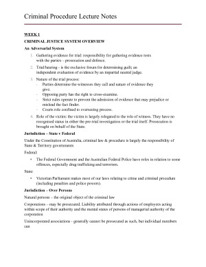 hese are my fully comprehensive detailed notes for MLL218 / MLP218 (Revised for 2024). This is all I used for the exam. I have spent countless hours compiling these notes. My mark was 93 HD for the subject. I scored 100% in the exam using only these notes. These notes are comprehensive and integrate everything learnt in the subject, including the prescribed readings from the textbook, lecture notes, tutorial answers, case summaries, etc. These notes also include exam templates and summary flow charts (including a full summary exam template section which can be used in the exam alone) which is shown at the end of the sample of the notes. These notes cover the following topics: - Search of a Person and their Possessions - Forensic Procedure > Non-Voluntary Forensic Procedure > DNA Samples > Fingerprinting - Police Questioning > Silence and Privilege Against Self-Incrimination > Questioning in Police Custody > Admissions - Identification Evidence > Visual Identification Evidence > Picture Identification Evidence - Commencement of Criminal Proceedings > Arrest > Commencing Trial - Committal Procedure for Indictable Offenses - Jury Selection Hope these comprehensive notes help you smash Criminal Procedure!
