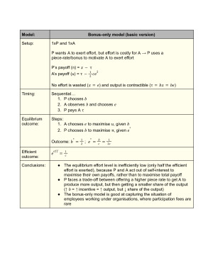 ECON3123 notes covering ALL lecture content, from week 1 to week 10. Notes are written in clear, easy to comprehend english. Contents includes: - Bonus only model - Bonus only model with middle man - Bonus only model with altruism - Bonus only model with stealing - Fixed + bonus incentive scheme - Fixed + bonus incentive scheme with intrinsic motivation - Fixed + bonus incentive scheme with stealing - Fixed + bonus incentive scheme with fixed effort cost - Fixed + bonus incentive scheme with middle man - Misaligned incentives model - Misaligned incentives model with misaligned performance measure - Misaligned incentives model complex version - Multi-tasking / crowding out effect - Noisy / uncertain incentives with risk aversion / risk-loving - Noisy incentives with 2 performance measures - Noisy incentives with risk aversion - Gaming model - Informational problems - Multi-tasking / crowding out effect with noise - Multi-tasking / crowding out effect with misaligned incentives - Agent who doesn't produce useful effort - Multi-tasking with misaligned noisy incentives and risk aversion - Relative performance evaluation - Relative performance evaluation with noise - Joint performance evaluation / teamwork model - Disagreement model - Disagreement model with persuasion - Decision authority model - Sequential authority model - Sequential authority model with help / sabotage - Authority model with stretching - Authority model with 2 agents and 2 projects - Hold up model - Asset ownership model - Asset ownership model with constant outside options - Asset ownership model with indirect impact on final value - One period shirking model - Two period shirking model - Sequential two period model - Two period model with productive replacements - Sequential two period model with participation fees - Two period model with retirement - Temp scheme career incentives model - Fixed assignment scheme career incentives model - Advancement scheme career incentives model