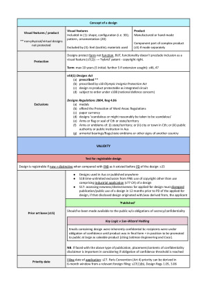 A comprehensive summary, in an aesthetically-pleasing and tabular format, of the case law and legislation relevant to Intellectual Property Law. It covers all examinable topics, including: - Breach of confidence - Patents - Copyright - Design - Passing off and ACL s 18 - Trade marks