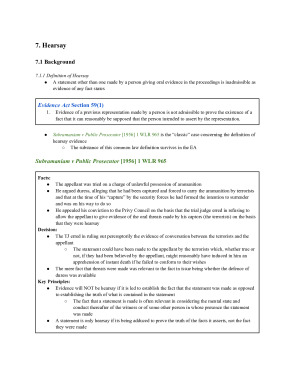 Why buy these notes? ✓ Digestible ✓ Comprehensive ✓ Relevant legislative provisions ✓ Case summaries with PINPOINTS ✓ Practice problem questions with ANSWERS Tell me more! Clear, easy to understand, yet comprehensive set of notes on Evidence Law. This document includes notes on all relevant legislation and case law, which clearly defines the facts, decision and key principles of each case listed on the unit reading guide. These notes also contain a number of practice problem questions across various topics with an outline on how each should be answered in an exam to achieve a top mark. These notes were made through a close reading of the required reading (cases, legislation and textbook), compiling a range of notes written by HD students and using a range of in-depth supplementary readings and textbooks. Hundreds of hours have been invested into perfecting these notes. These notes allowed me to get an HD in the mid-semester exam and a D in the final exam. Topics: 1. Introduction to evidence law 2. Relevance 3. Proof (i) 4. Adversarial trial 5. Adducing evidence – witnesses, documents and real evidence 6. Credibility Evidence 7. Hearsay 8. Tendency and coincidence evidence 9. Character of the accused 10. Opinion 11. Identification evidence 12. Discretions 13. Admissions and Self-Incrimination 14. Privilege against self-incrimination 15. Proof Part 2 Please note these notes are also available WITH SCAFFOLDS under a package deal on StudentVIP under 'HIGH QUALITY Evidence Law notes with SCAFFOLDS for ANY problem question and PRACTICE QUESTIONS'.