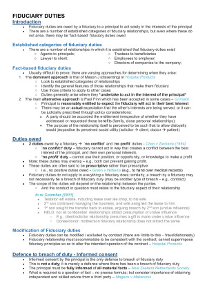 Comprehensive Final Exam notes for LAWS2709 Trusts and Equity Final Exam notes Updated 2023!!!!!!!!! Everything you need to know for your trusts and equity final exam I used these to get a 7/High Distinction in the course + CONCISE - good to bring into exam + clear headings + colour coded + handwritten flow charts + all relevant cases broken down (facts + decision) + main takeaways from each case + important quotes from judgments + question approaches - FIDUCIARY DUTIES + QUESTION APPROACH + BREEN V WILLIAMS BREAKDOWN - TERMINATING AND VARYING TRUSTS - TRUSTEES - CONSTRUCTIVE TRUSTS - RESULTING TRUSTS - REMEDIES