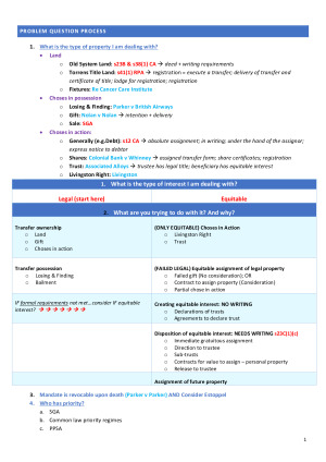 Comprehensive IPCL notes which I used to learn the course and study for the exam. The notes include summaries for each topic and scaffolds for the exam. Notes cover the following topics: (1) Real property (2) Choses in possession (3) Choses in action (4) Assignment and disposition of property (5) Priorities (6) Security interests under the PPSA