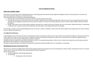 Concise, easy to understand notes for LLB170. Contains: Week 1: Express Terms Week 2: Construing The Terms/Extrinsic Evidence Week 3: Gap Filling Week 4: Gap Filling Continued Week 5: Performance And Breach-Termination Week 6: Termination Continued… Week 7: Remedies For Breach And Performance Of Contract Week 8 Vitiating Factors – A. Misinformation: Mistake Week 9: Vitiating Factors: Misinformation: Misrepresentation And Misleading And Deceptive Conduct Week 10 Contracts Week 11: Statutory Unconscionability And Unjust Contracts