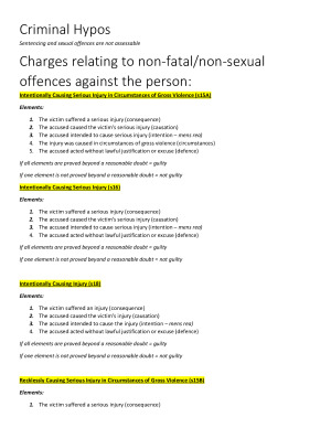 Criminal Law and Procedure Notes - elements of offences, case summaries and more