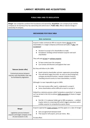 LAW5473: INTERNATIONAL M&A NOTES (Distinction)