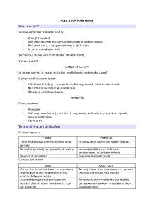 Topics: - Tort Law Introduction - Damages - Compensatory Damages for Personal Injury - Heads of Damages - Damages for Wrongful Death - Statutory Compensation Schemes - Trespass Torts - Battery - False Imprisonment - Stolen Generations and Torts - Assault - Action on the Case for the Intentional Infliction of Harm - Consent Defence - Necessity Defence - Self Defence - Good Samaritan Immunity - Immunity for Volunteers/Food Donors - Contributory Negligence/Provocation - Trespass Torts Damages - Proprietary Torts - Trespass to Land - Private Nuisance Tort - Negligence - Public Authorities Negligence - Misfeasance in Public Office - Vicarious Liability - Employment Status - Non-delegable Duty of Care