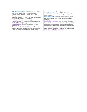This is a single page, double sheet set of notes that can be used for the exam. Covers all topics (Week 1 to 12) and important information such as formula, relevant images and concepts. Topics are colour coded, so that information is found quickly during the exam. Covered topics are: Chapter 1 - Introduction Chapter 2 - Graphics Chapter 3 - Decomposition Chapter 5 - Forecaster's Toolbox Chapter 8 - Exponential Smoothing Chapter 9 - ARIMA models Chapter 7 - Regression models Chapter 10 - Dynamic Regression models
