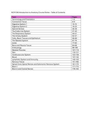 HD (94) HLTH108 Introduction to Anatomy Course Notes