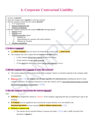 These notes were meticulously prepared during Semester 2 2024 and include the latest topics covered in Corporations Law. Designed to address everything tested in both the mid-semester and final exams, they feature structured scaffolds that will tackle any problem question. Topics Covered: 1. Introduction to Corporations Law 2. Corporate Fundraising: Debt and Equity 3. Corporate Personality 4. The Corporate Constitution and Decision-Making Organs 5. Company Meetings 6. Corporate Contractual Liability 7. Corporate Attribution and Liability: Tort and Criminal Law 8. Director's duties 1 9. Director's duties 2 10. Director's duties 3 11. Insolvency 12. Members’ Rights and Remedies Whether you're seeking clarity in complex legal concepts or aiming for a high distinction, these notes are the perfect tool to help you excel.