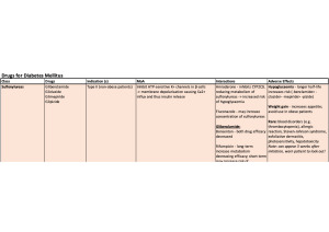 Here is a cheat sheet I made for the Diabetes Mellitus component which helped me score an 88 in this challenging unit :) Topic list: - sulfonylureas - biguanides - thiazolidinediones - alpha-glucosidase inhibitors - GLP-1 analogues - DPP4 inhibitors - SGLT2 inhibitors - insulins - antidote - glucagon It includes: - drug monographs based on the mechanisms, adverse effects, interactions, etc.