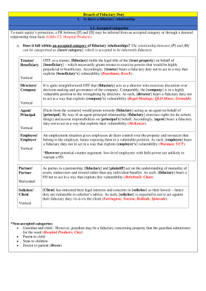 These are comprehensive Equity notes which enabled me to get an 84 HD, most of which came from the exam itself. The notes provide a great explanation of each topic, along with relevant cases to help you ace the exam. Topic 2: Breach of Fiduciary Duty Topic 3: Third Party Liability Topic 4: Personal remedies Topic 5: Proprietary Remedies Topic 6: Assignments