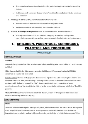 Master the complexities of Family Law with these meticulously curated study notes explicitly designed for university students and exam takers. This comprehensive resource covers every aspect—from the fundamentals of Family Law to the nuanced areas of marriage, separation, divorce, children and parentage, surrogacy, de facto relationships, property division, and spouse maintenance. Key Features Include: Structured Organization: Each section is arranged to mirror your course syllabus, ensuring a smooth and logical revision process. Exam-Focused Approach: Benefit from clear explanations and concise summaries that streamline your study sessions and enhance exam performance. Up-to-Date Insights: Stay current with modern legal interpretations and relevant legislative updates in Family Law. User-Friendly Navigation: Quickly locate key topics with an easy-to-follow table of contents, making your study sessions efficient and targeted. Table of Contents Overview: FAMILY LAW INTRODUCTION MARRIAGE, SEPARATION AND DIVORCE CHILDREN, PARENTAGE, SURROGACY, PRACTICE AND PROCEDURE DE FACTO RELATIONSHIPS PROPERTY SPOUSE MAINTENANCE Whether preparing for exams or aiming to deepen your understanding of Family Law, these notes serve as your ultimate study companion—simplifying complex legal concepts and building your confidence for success.