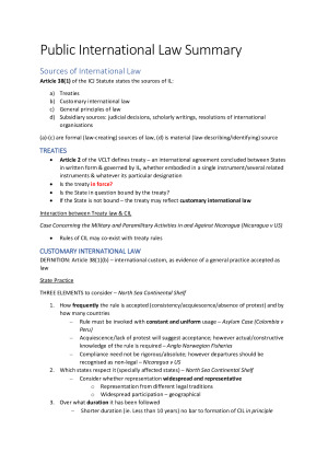 Comprehensive notes & scaffolds used to learn the public international law course. - Sources of international law - Treaties - International and domestic law (monism and dualism, customary international law in Australian law, treaties in Australian law) - Personality, recognition and self-determination - State title to territory - State jurisdiction - Immunities from jurisdiction - State responsibility - The use of force - Settlement of disputes