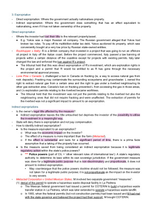 These notes are detailed, neatly formatted (with headings and subheadings) and contain concise summaries of lecture notes, legislation and cases. Topics include: - Introduction to International Investment Law - Which Investors and Investments are Protected? - Expropriation - Fair and equitable treatment - Other Investment Protections - Exceptions and defences
