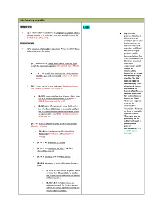 These Remedies notes provide logical structures for hypothetical responses and comprehensive analysis for essay responses. The notes allowed me to achieve 85 in Remedies in Semester 1, 2024. Topics covered include: - Forms of Loss - Forms of Damage - Compensatory Damages for Breach of Contract - Statutory Damages under the ACL - Compensatory Damages in Tort - Equitable Compensation - Specific Performance - Permanent and Interlocutory Injunctions - Lord Cairns' Act Damages - Gain-Based Remedies - Rescission