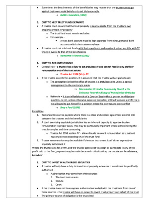 Topic 1 - The Origin and Nature of Equity and its Relationship with Common Law Topic 2 - Undue Influence and Unconscientious Dealings Topic - Equitable Remedies (Specific Performance and Injunctions) Topic 3 - Fiduciary Relationships Topic 4 - Fiduciary Remedies Topic 5 - Equitable Assignments Topic 6 - Nature and Classification of Trusts Topic 7 - Trustees and Beneficiaries Rights and Duties Topic 8 - Certainty of Intention and Statutory Formalities Topic 9 - Certainty of Subject Matter and Certainty of Objects Topic 10 - Charitable Trusts This exam table states out each topic covered in a concise and structured manner. It sets out an approach on 'how to' answer exam style questions.