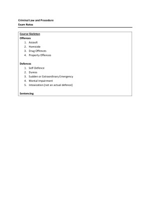 These notes cover the entire Criminal Law and Procedure course, and integrate all the relevant readings — both cases and statute, and all secondary materials. These exam notes achieved a subject score of 87.