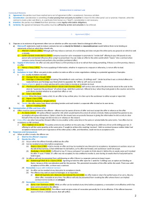 Exam notes that cover: - Agreement (Offer) - Agreement (Acceptance) - Consideration - Intention to Create Legal Relations - Certainty and Completeness - Formalities - Parties (Including Capacity, Privity and Assignment) - Express Terms - Implied Terms - Construction (including exclusion clauses)