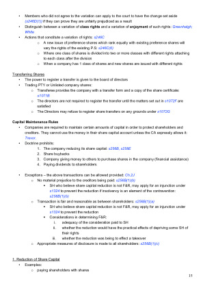 Notes combining lecture materials, readings and other materials which earned me a HD on the exam. Detailed, comprehensive and well-structured Includes content on: - Formation & Classification; - Effects of Incorporation; - Company Constitutions; - Debt & Equity Financing; - Decision Making; - Corporate Contracting; - Directors' Duties; - Members' Remedies