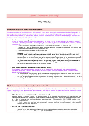 These are the exact notes I used to obtain a H1 in the 2024 contracts exam. By using this, you can avoid scrambling to create notes in SWOTVAC, and instead focus on practice exams! Topics covered: 1. Terms - incorporation - interpretation 2. Unfair terms 3. Termination - frustration - non-fulfilment - breach - late performance 4. Vitiating factors - mistake -duress -undue influence -unconscionable dealing - illegality
