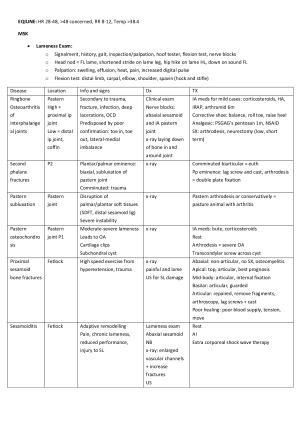 Equine Theory - MSK, Neuro, respiratory, derm, GIT, dentistry, endocrine, haemolymphatic disease, eyes, urinary, reproductive surgery, parturition, anaesthesia, antibiotics, wound care, Equine Prac - Nerve blocks, x-rays Diagnostic Imaging Theory - Quality, machines, abdomen, thorax, MSK, contrast, ultrasound, positioning