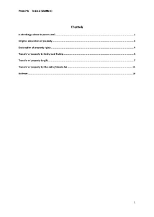 - Comprehensive scaffolds: effective structure with key principles and facts of each case - Table of contents - Covers Topic 2 (Chattels) - Covers all required cases and statutes - Covers important additional cases and statutes in lectures