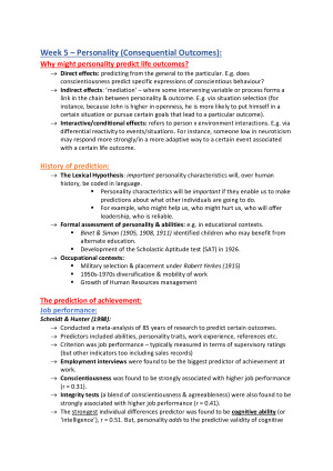 -These notes are easy to follow, and cover the entire unit in comprehensive detail. -They are colour-coded, and include diagrams & pictures to enhance your knowledge -These notes will ensure you receive full marks on your end of semester multiple-choice exam. I followed them to get a 96% exam result on mine. Topics covered: Week 1: Introduction to Social Psychology Week 2: Introduction to Personality Psychology Week 3: Quantitative Methods Week 4: Personality (Development & Change) Week 5: Personality (Consequential Outcomes) Week 6: Personality (Persons & Situations) Week 7: Perceiving Self & Others Week 8: Intra & Intergroup Dynamics Week 9: Attitudes & Behaviours Week 10: Relationships Week 11: Helping & Harming Week 12: Morality & Evolutionary Psychology