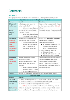 These comprehensive Remedies notes synthesise the course content into a step-by-step guide for answering an exam hypothetical. The notes: - are neatly organised under headings and dotpoints - contain relevant findings from key cases - use tables and colour-coding to present the content clearly and succinctly The notes cover all topics examinable by hypothetical, including: - Contract - Debt and Penalties - Torts - ACL - Equity - Vindication / Punishment (Normative Damages and Exemplary Damages) - Specific Performance - Permanent Injunctions - interlocutory Injunctions - Lord Cairns Act Damages - Gains-Based Damages (Account of Profits, Negotiating Damages and User Damages) - Personal Restitution (Money Had and Received and Quantum Meruit) - Rescission ABOUT ME: I graduated from the JD with a H1 WAM and in the top 10 of my cohort. Using these notes, I achieved a score of 83 in Remedies.