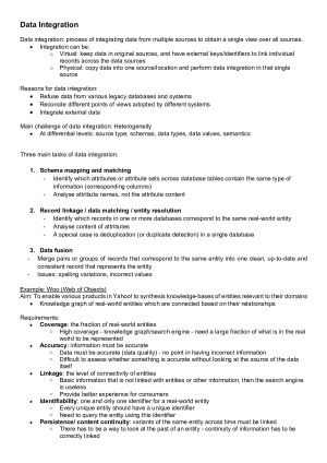 60+ pages of exam notes ready to print and bring to final exam. Covers all topics, including: Overview of Data Wrangling; Data Quality and Exploration; Data Pre-Processing; Data Integration; Record Linkage; Advanced Record Linkage Techniques; Data Fusion; Privacy Aspects; Ontology Matching; Wrangling Dynamic Data and Data Streams. Includes diagrams to demonstrate concepts. Includes examples to problem-solving questions.