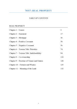 Comprehensive notes covering all topics studied in the Real Property subject. Notes from readings, lectures, tutorials and detailed case summaries. My notes include detailed case summaries, remedies and scaffolds. Topics covered include: - Leases - Easements - Mortgages - Positive Covenant -Negative Covenant -Torrens Title: Priorities -Torrens Title: Indefeasibility - Co-ownership -Doctrine of Tenure and Estates -Fixtures and Wastes - Meaning of the Land